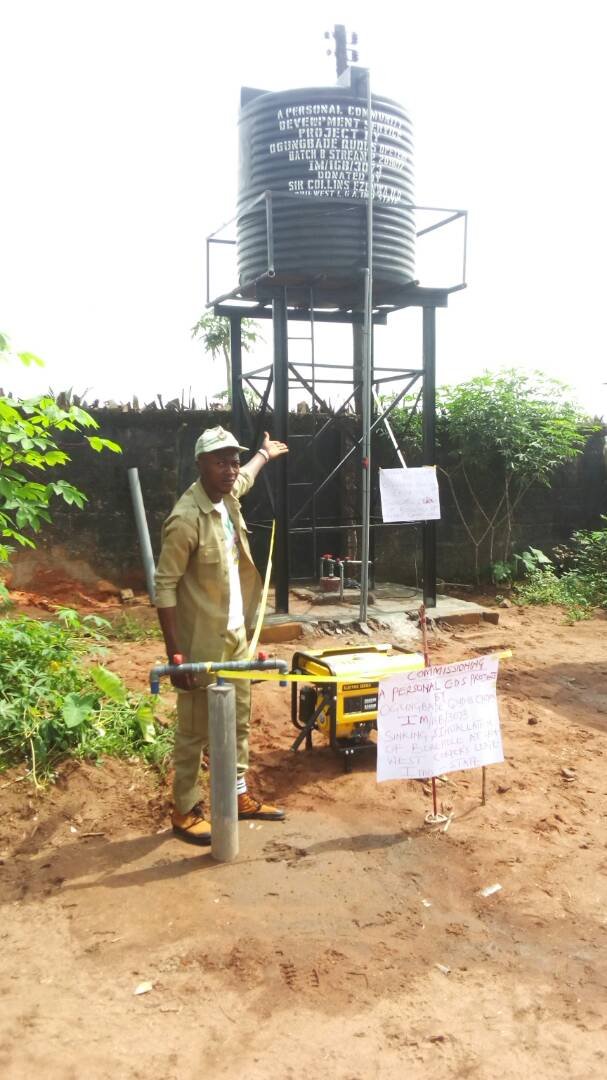 The Corps member, Ogungbade Qudus carried out the project under the NYSC Community Development Service (CDS) programme, having experienced water scarcity during his short stay at Mgbidi, before deployment to his place of primary assignment.